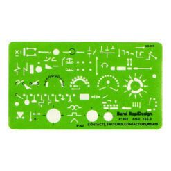 The most comprehensive set of electrical/electronic templates, taken from ANSI Y32.2 symbols, grouped into sections for easy use, and are in correct relative size so any size grid can be obtained through photographic reduction. Complete set provides nearly all electrical and electronic symbols uesed.